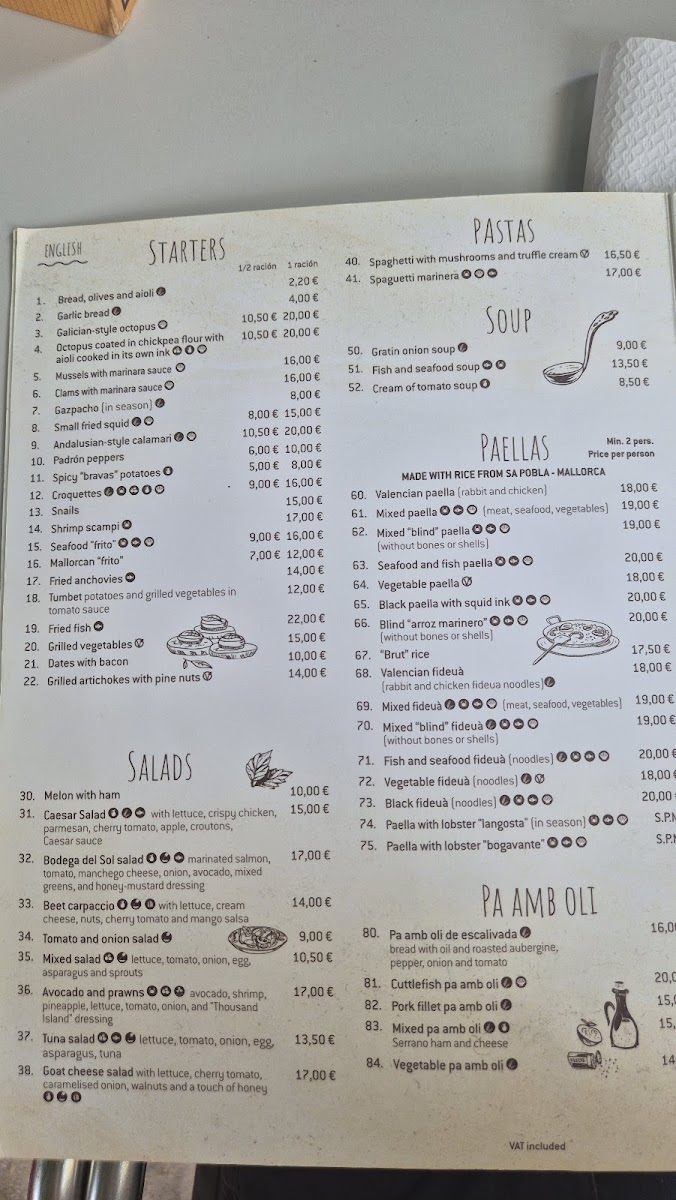 As we step into the vibrant world of Bodega del Sol, we are immediately greeted by the friendly staff, who embody the restaurant’s welcoming spirit. The menu boasts a variety of options, showcasing the best of Mallorcan cuisine. From generous seafood platters, which left one customer raving about their portion size and delightful ambiance, to expertly crafted vegetarian paella that speaks to the culinary traditions of the region, every dish is a celebration of flavors.